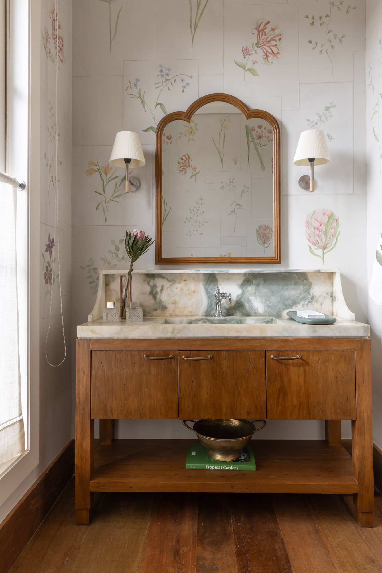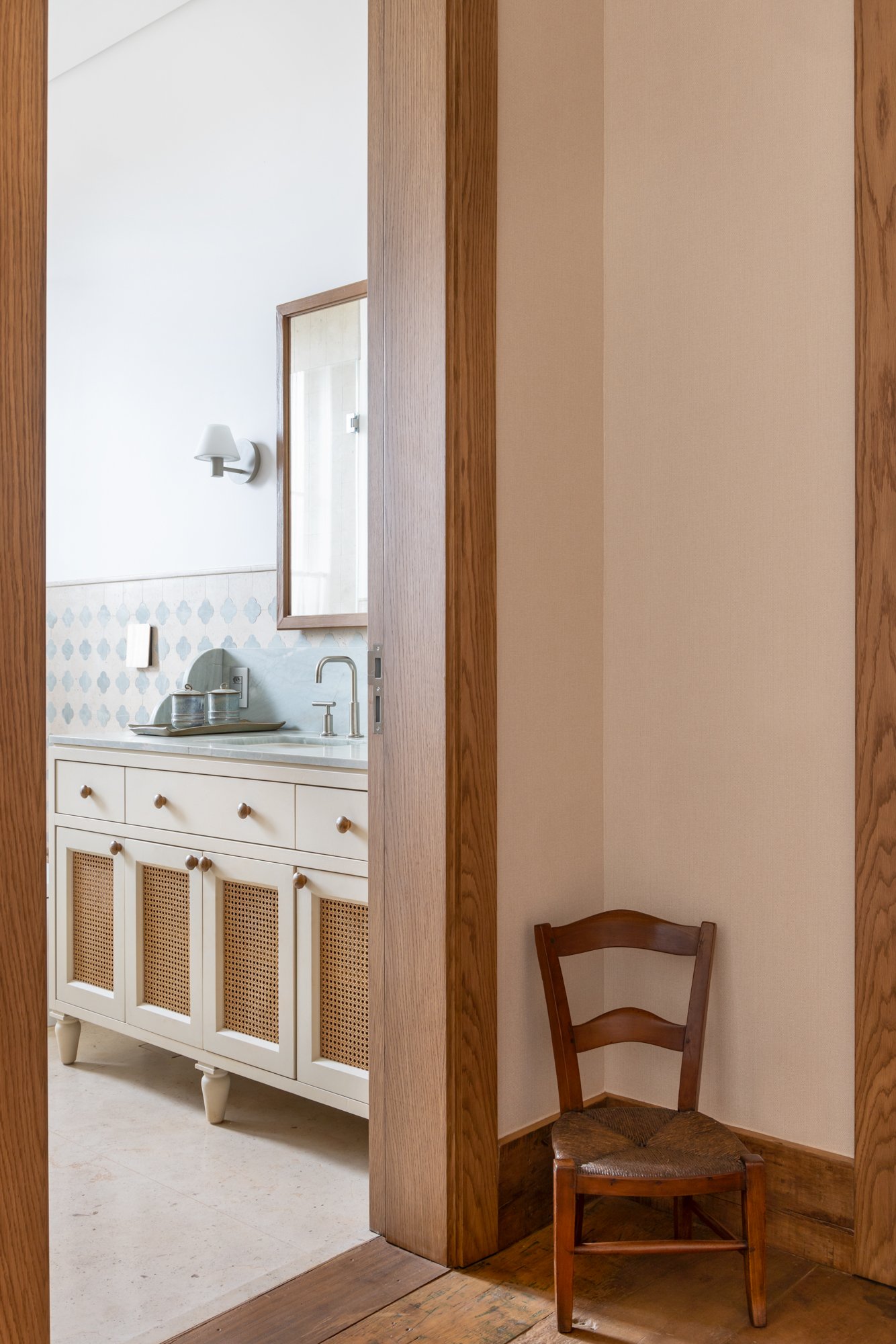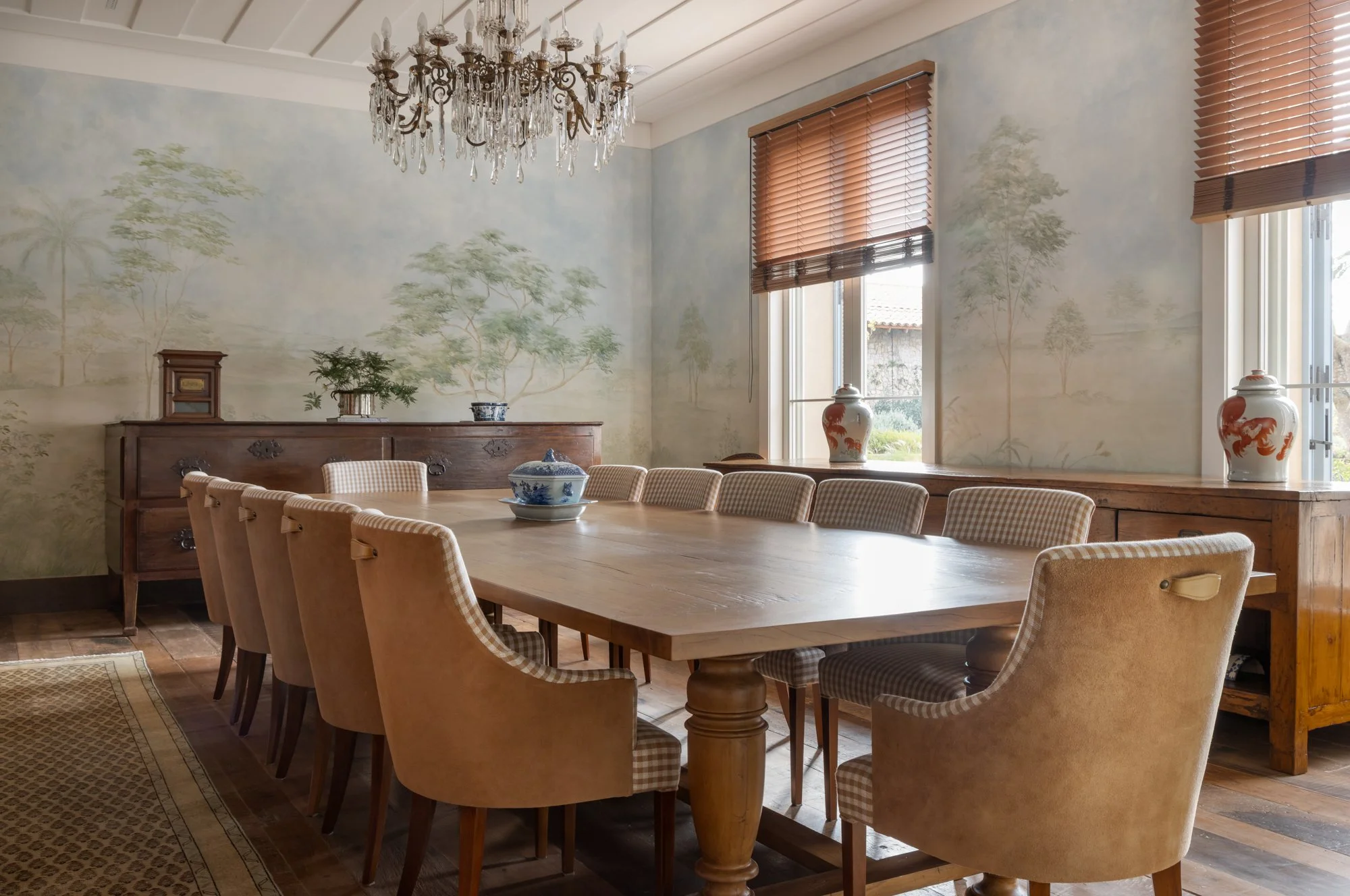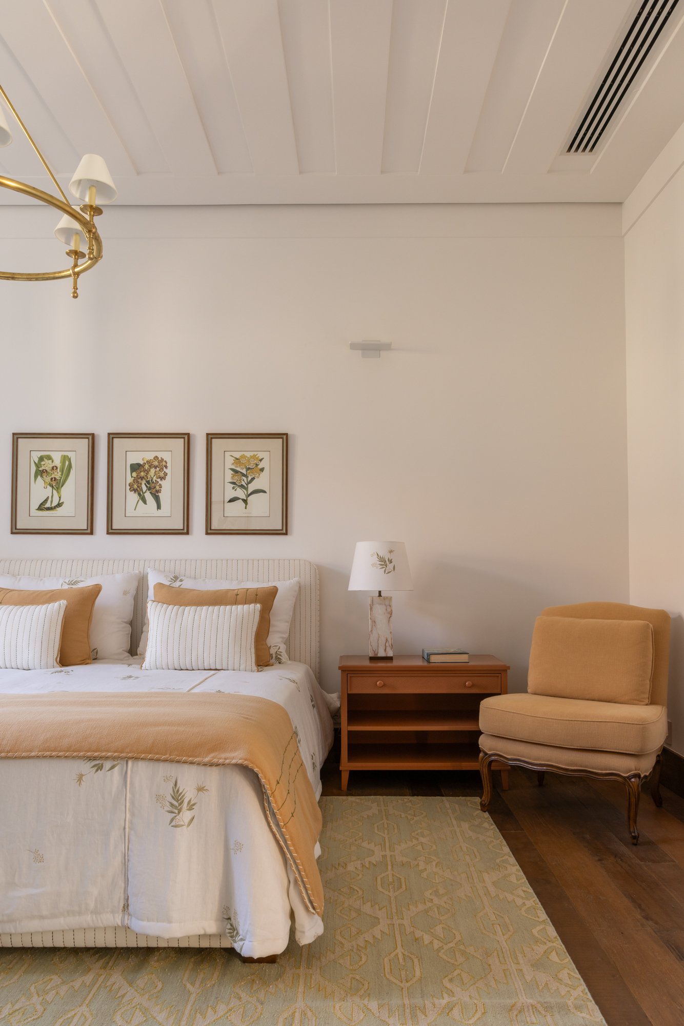 Desenhos antigos foram revisitados e uma pesquisa extensa foi realizada para a concepção das marcenarias e frontões de lareira. Antiguidades garimpadas completam a composição — todos os elementos que transformaram os ambientes em uma verdadeira experiência.