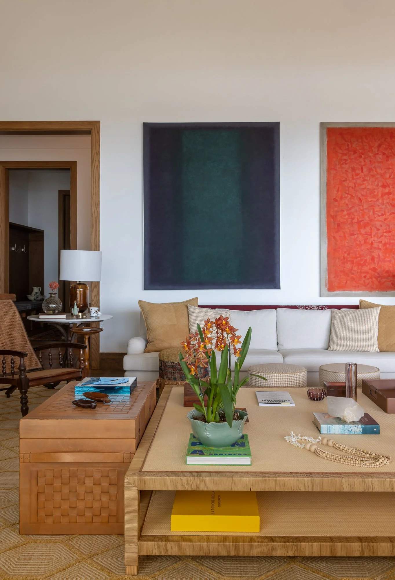 Alguns móveis já faziam parte do acervo dos proprietários e foram cuidadosamente integrados à nova proposta, o que é uma característica marcante nos projetos do escritório Marina Linhares Interiores.