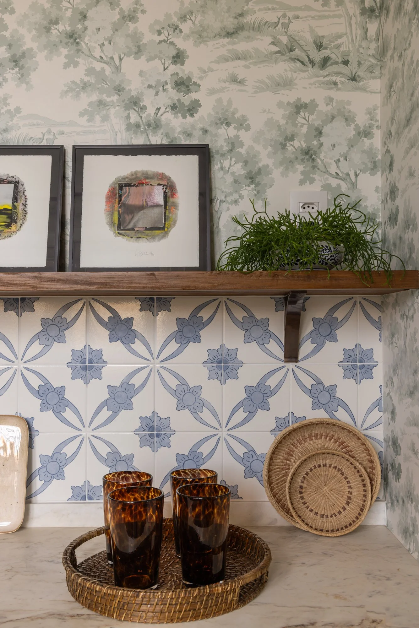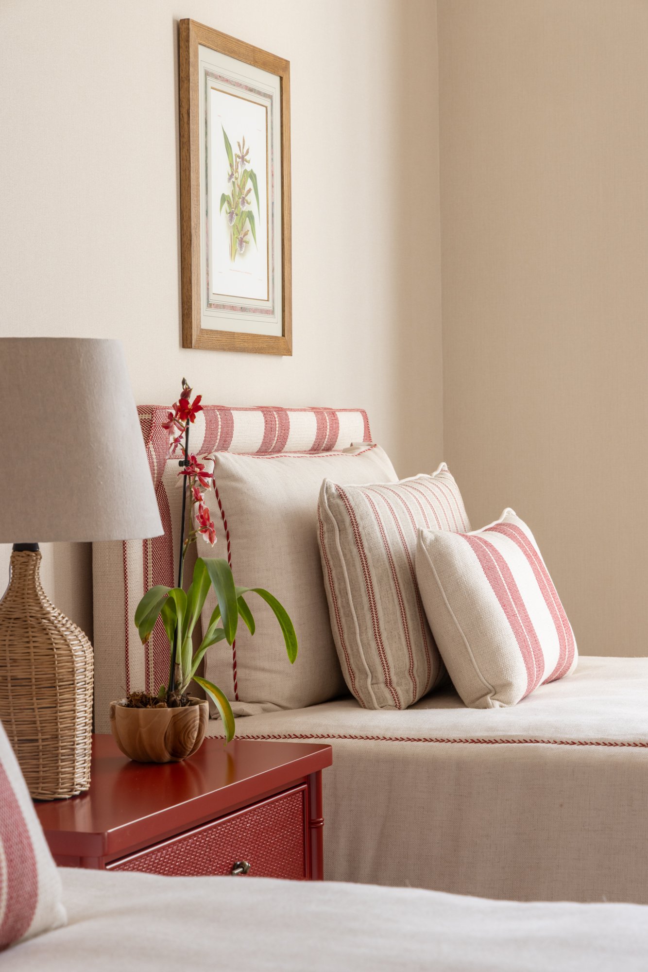 Cada suíte foi identificada por azulejos numerados, pintados à mão pelo Ateliê Adriana e Carlota, reforçando o cuidado artesanal presente em todo o projeto.